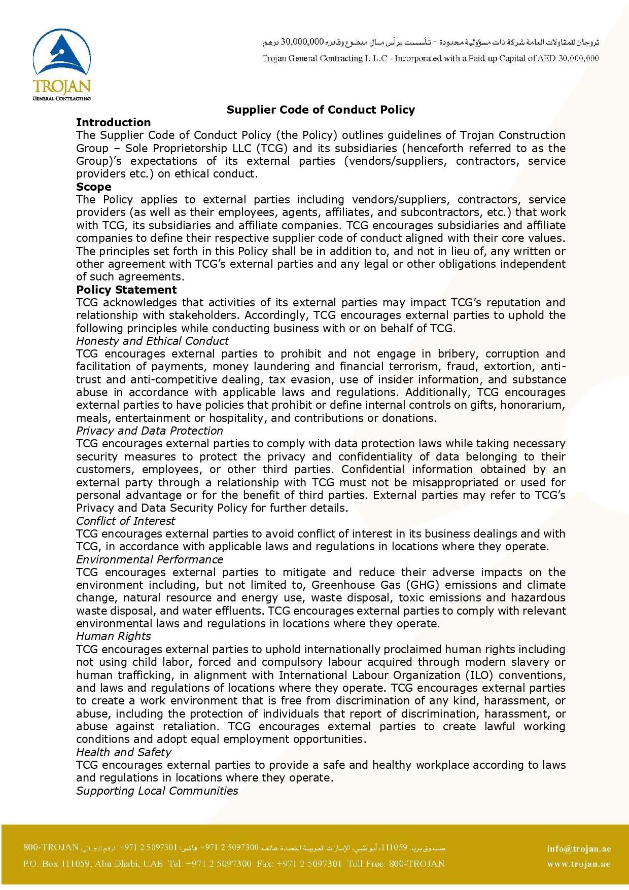 Supplier Code of Conduct Policy