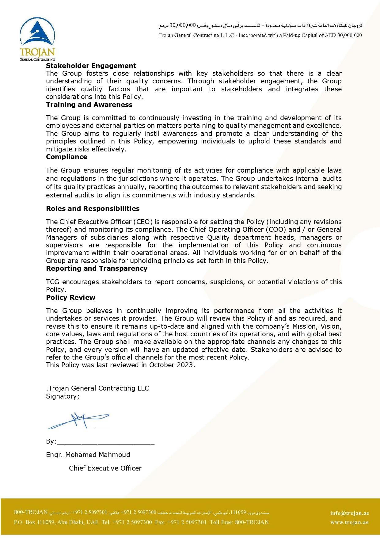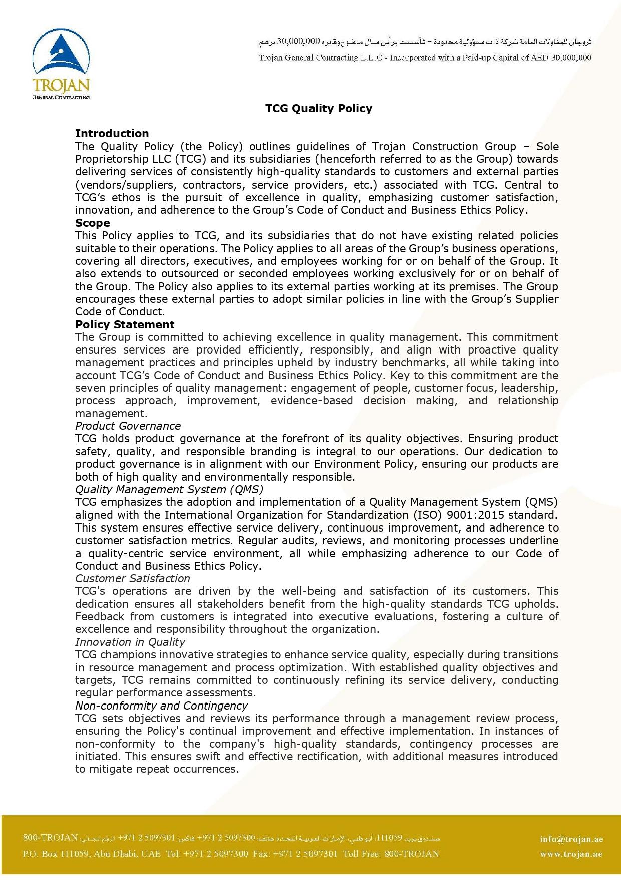 TCG Quality Policy