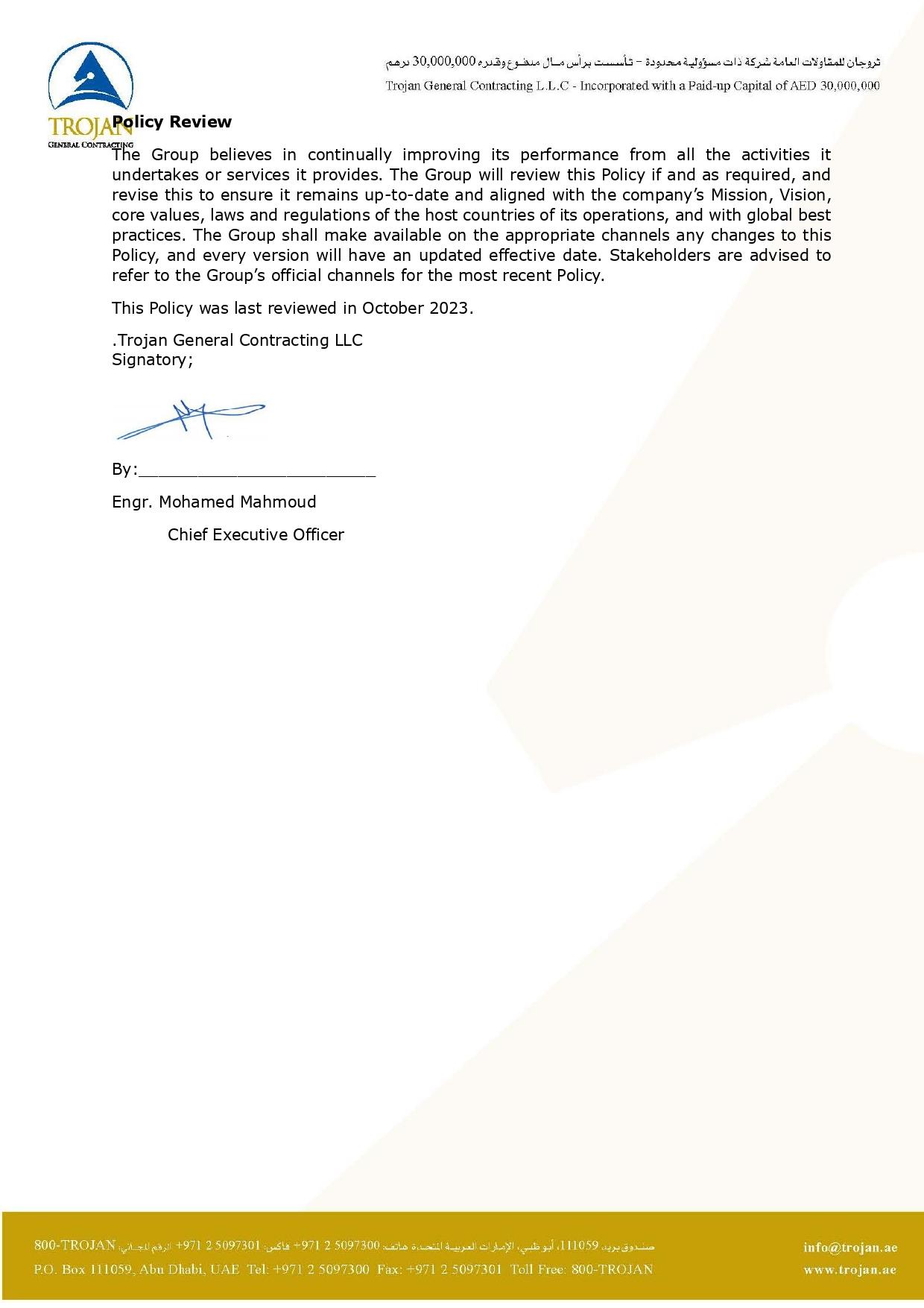 Occupational Health and Safety Policy Statement