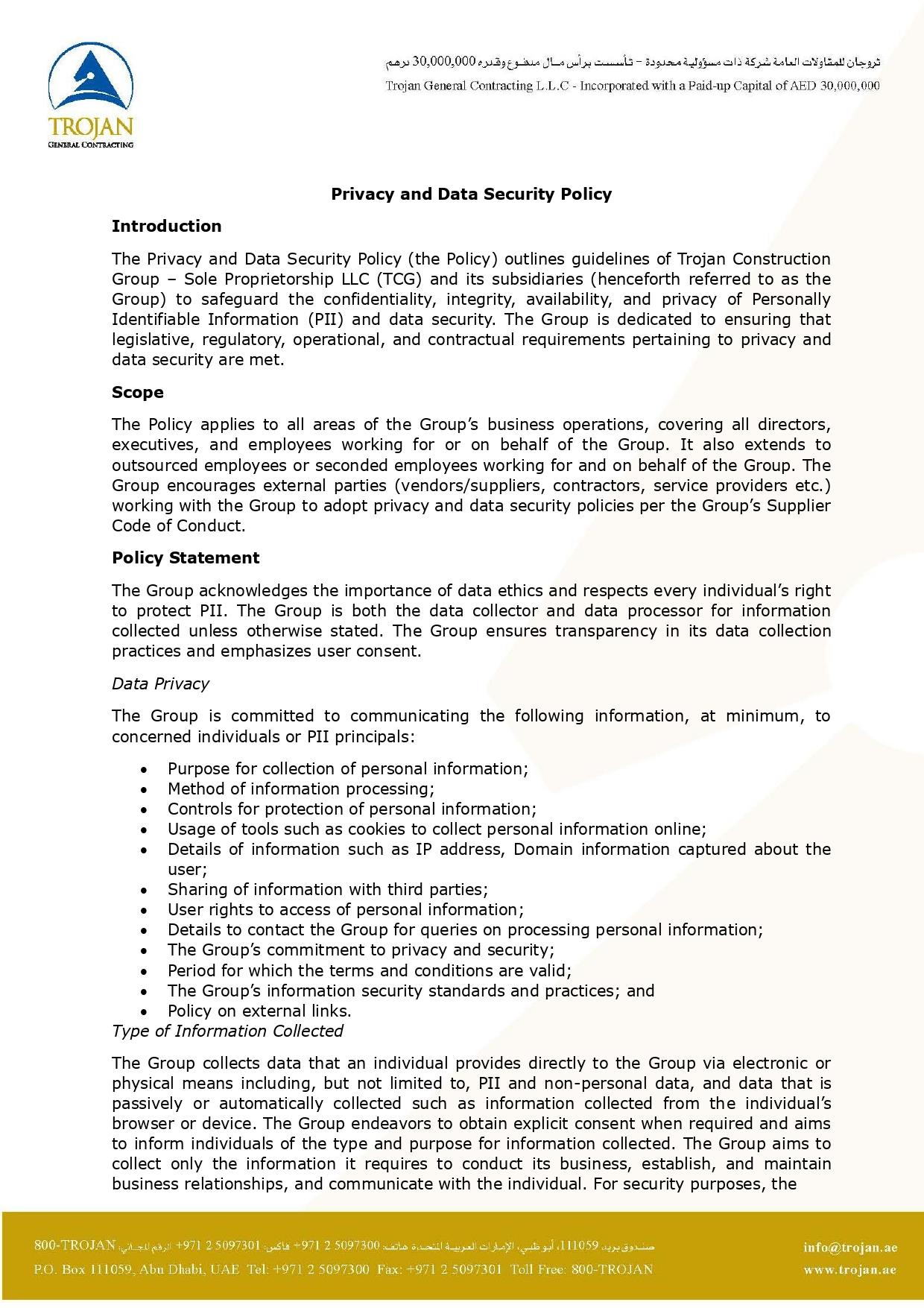Privacy and Data Security Policy