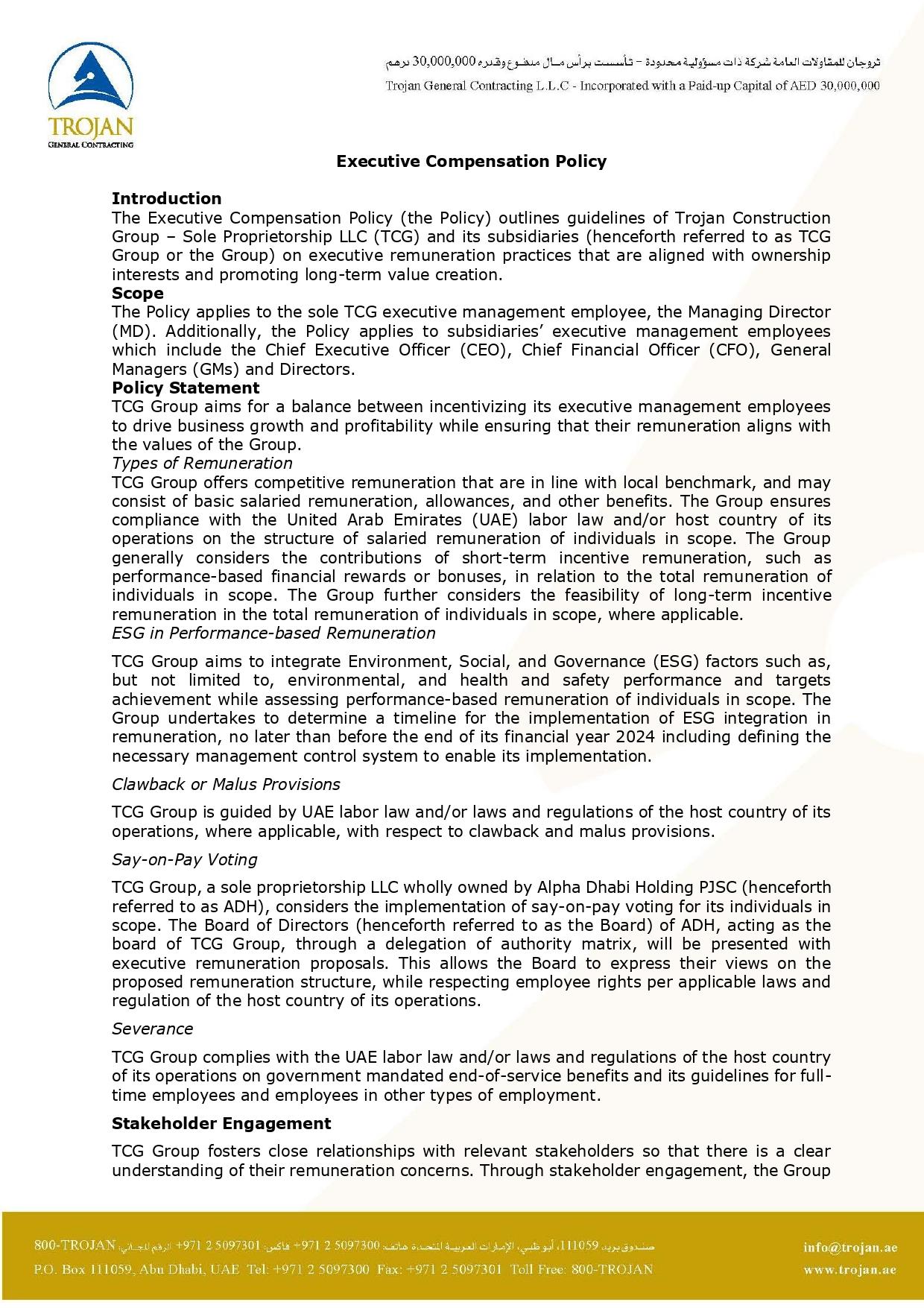 Executive Compensation Policy